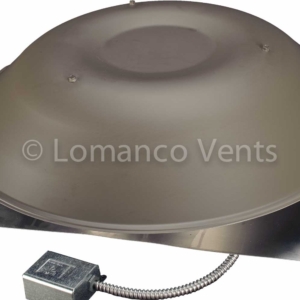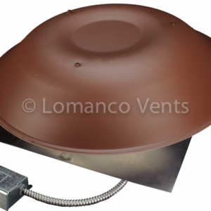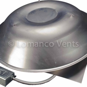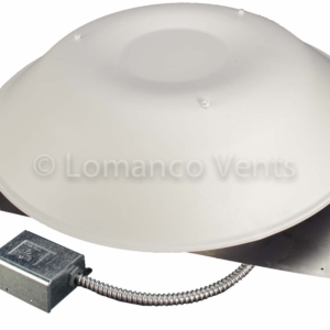 Roof mount power vent with factory set adjustable thermostat.